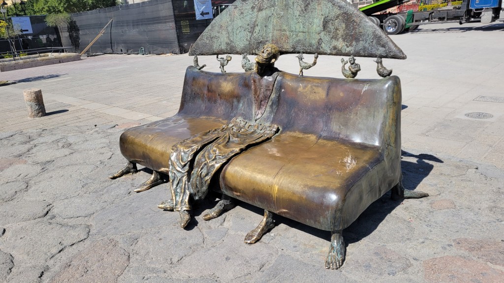 We Ubered to PV and walked the old town, the Malecón and the Zona Romántica. Following our rules of eating at busy places we found some delicious seafood tacos at Mariscos El Güero a few blocks from the mouth of the Rio Cuale and the flea market that follows the river under the trees.