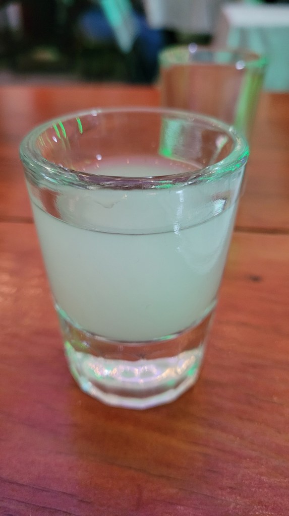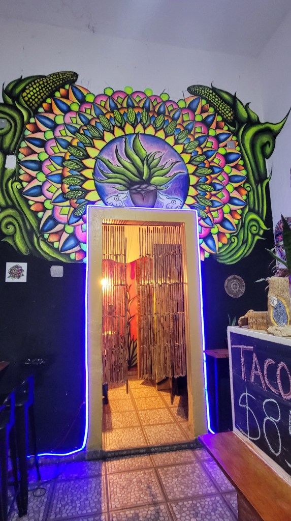 Along the way we stopped for pork and tongue tacos (forgot a picture) at a street side stand. And a bar with prawns in a fresh coconut with the tender coconut as part of the dish.