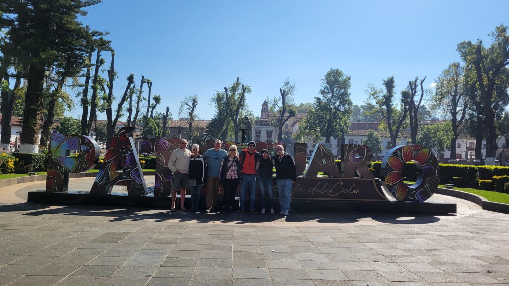 We set off with Deb’s relatives, Pat and Barry, on a beautiful morning intent on seeing the Puebla Magico town of Sayulita. It’s a very quaint beachside surfing village that has been preserved for it’s cozy historical charm. We walked the beach and took in the warm winter sun along with hundreds of other tourists and locals that savour the “off the beaten track” quality of the this place. Our guides (Barry and Pat) knew of some unique refreshment locations a little out of town so after a great walk along the beach we headed for some libations and sustenance. About a 1/2 hour out of Sayulita we arrived at a hopping little restaurant/ bar called El Barracuda de Punta Mita. Punta Mita is a swishy point of land with very high end accommodations and residences that invitations by members only allows for visits. El Barracuda is another two or three Km’s down the rustic access road. The cold beer a shade of the palapa was a welcome reward but we tired of the pumping DJ creating a party vibe that at any other time wood have been welcome but there was one spot that fit our plans much nicer so we chugged, paid and drove in the direction of return. Margaritas on the Hill was just the right vibe to finish a great day sightseeing. They are noted for their namesake Margaritas so we indulged in a round (“when in Rome”… right?) and a delicious platter of nachos. As the sun set we devoured it all and eventually headed back to our Bucerias accom.