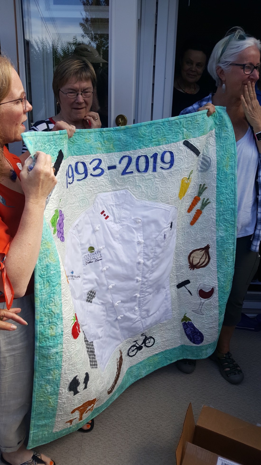 My chefs jacket was retired into an amazing quilt that will keep us warm on this cold evenings stargazing or watching the ocean waves.