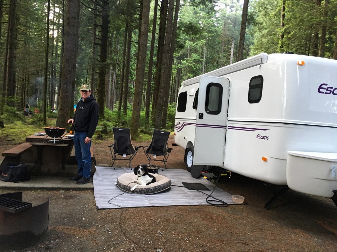 Fast forward 2 days and we were off to Chilliwack to pick up our rig, figure it out for 2 nights at Golden Ears Provincial Park with Fani our dog. She is NOT impressed with her living arrangement. No couch!! Chained up. Silly Hound!!