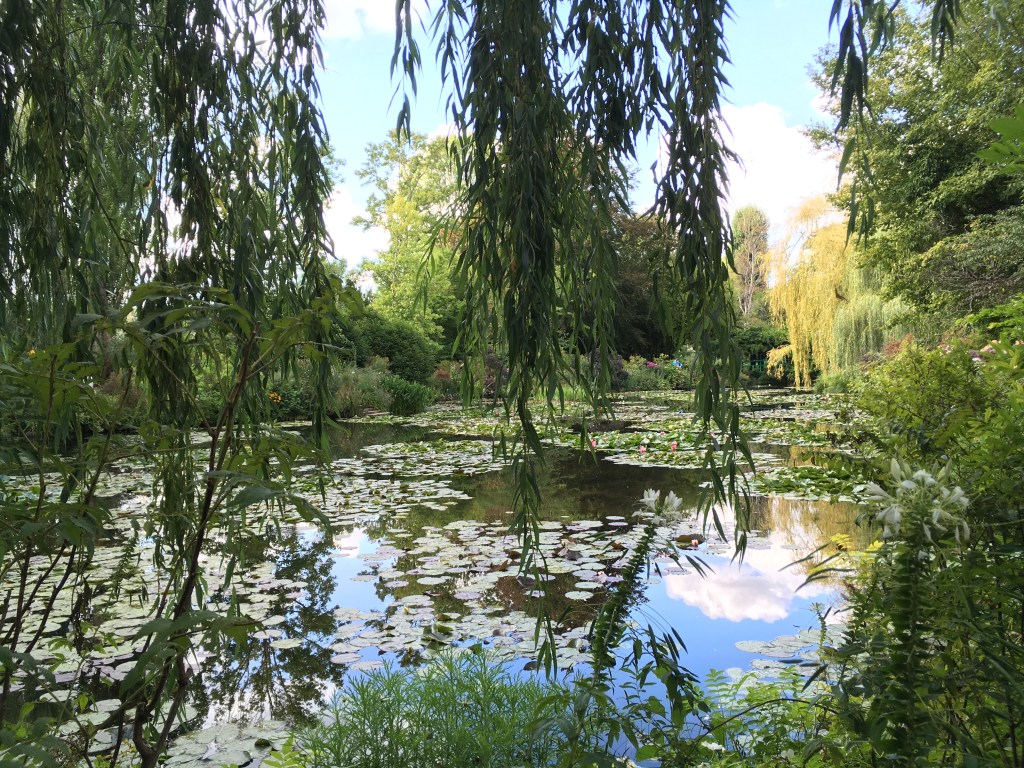 On our last day in Paris, our friends Lori and Mike arrived. Lori and I have been friends since before time. We were 3 when we met ….over 50 years ago!! And we still play together!! In fact, Lori introduced me to the aforementioned Luba. They were still functioning in the Canadian Mountain time zone so we did a bunch of stuff before getting to their hotel with, you guessed it, bread and cheese!! Luba and Bill arrived, the party started, we ate, we drank and we finished early with lots of laughs, and headed back to our hostel. That night there were professional musicians backing up an open mike session in the lobby of the hostel. We loaded our room card and tasted from 4 or 5 different self serve taps and enjoyed the music. We did our best to blend discretely into the youthful atmosphere. What a great last night in Paris!! Earlier in the day we skipped up to the airport to pick up our car and arranged to meet them for dinner. Hooray, GPS came with the car!! After 5 days our time came to an end in Paris, we easily packed our stuff into the car and headed north to Normandy and Britney. And a peek at Claude Monet’s garden.