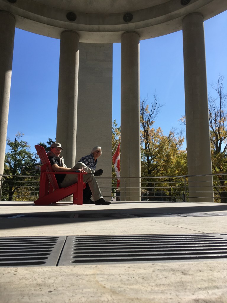 Speaking of Canada, we went to see the embassy and sat in the iconic Red Adirondack chairs that grace all our national parks and gave a shout out to west coast aboriginal artist Bill Reid, and our friend Doug Zilkie who assisted Bill when his Parkinson’s was so severe he could not do the finishing work on the Spirit of the Haida Gwaii. There are just two of these bronzes, one at Vancouver Airport in the International wing and one at the Canadian Embassy. We have seen both. The Vancouver one looks green like jade (the Jade Canoe) and the Washington one is outside and is black (the Black Canoe). One more that I have seen is the original plaster casting in the Canadian Museum of History, in Ottawa. We went inside the building and were allowed only to use the WIFI and see the art gallery which was completely underwhelming with a few cartoons by Lynn Johnston, of “For Better Or Worse” fame.
