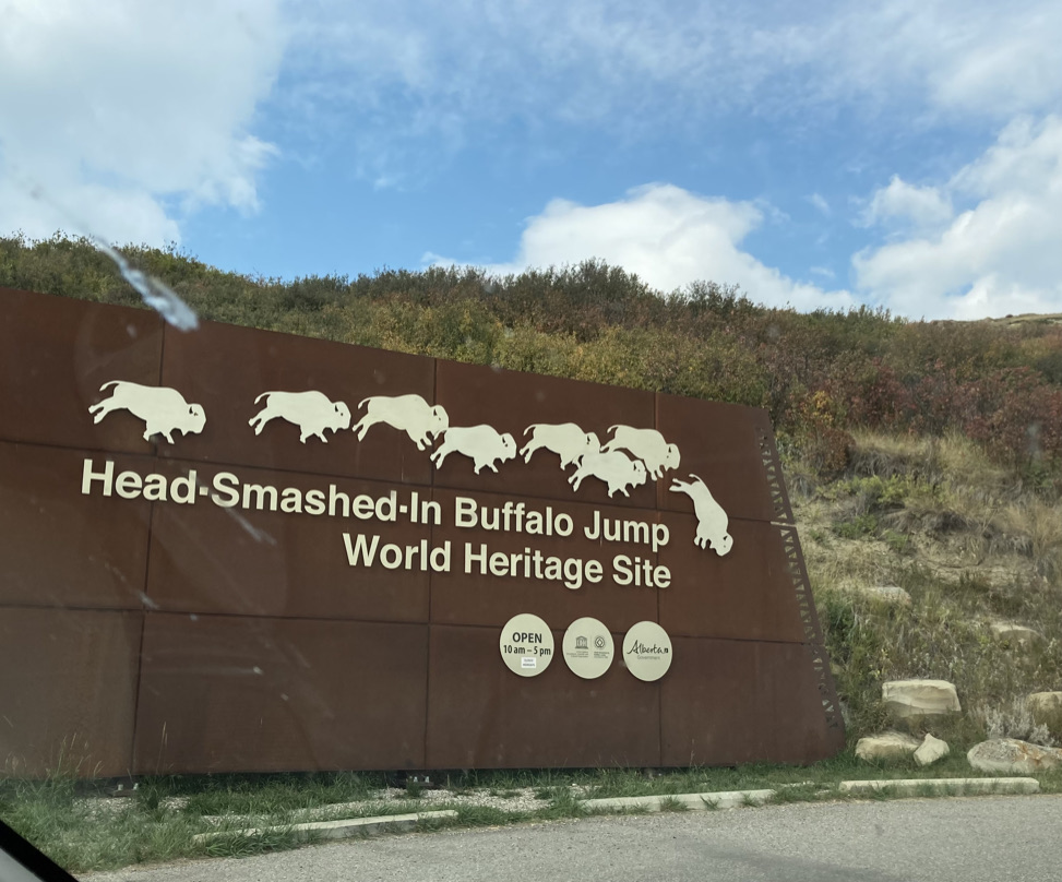 Diving into deeper learning about the Blackfoot nation began at Head Smashed in Buffalo Jump. The Blackfoot nation would drive the bison over a “jump”. A camp was set up to process the whole animal into food, clothing, tools, and housing. While the bison heads may have been smashed in, the elders tell the story of a young brave who went to watch but was too close below when they tumbled over and he was killed when his head was “smashed in”.