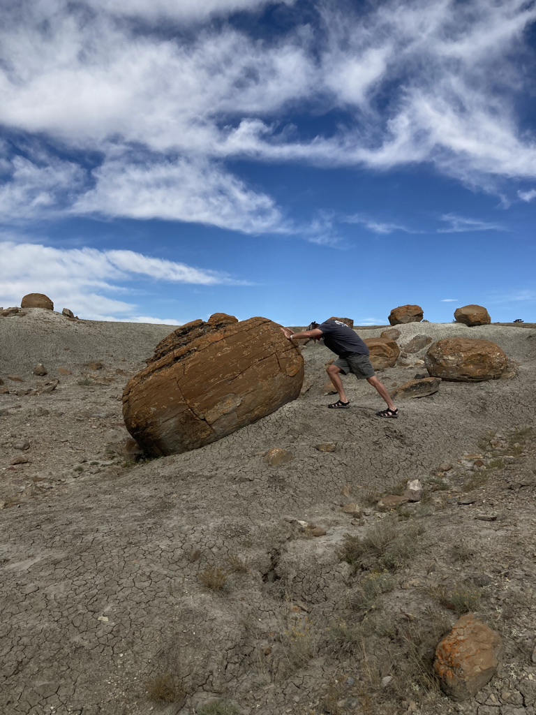 On the drive back to Writing on Stone we stopped at Red Rock Coulee. Here huge red boulder concretions are sprinkled over the land randomly.