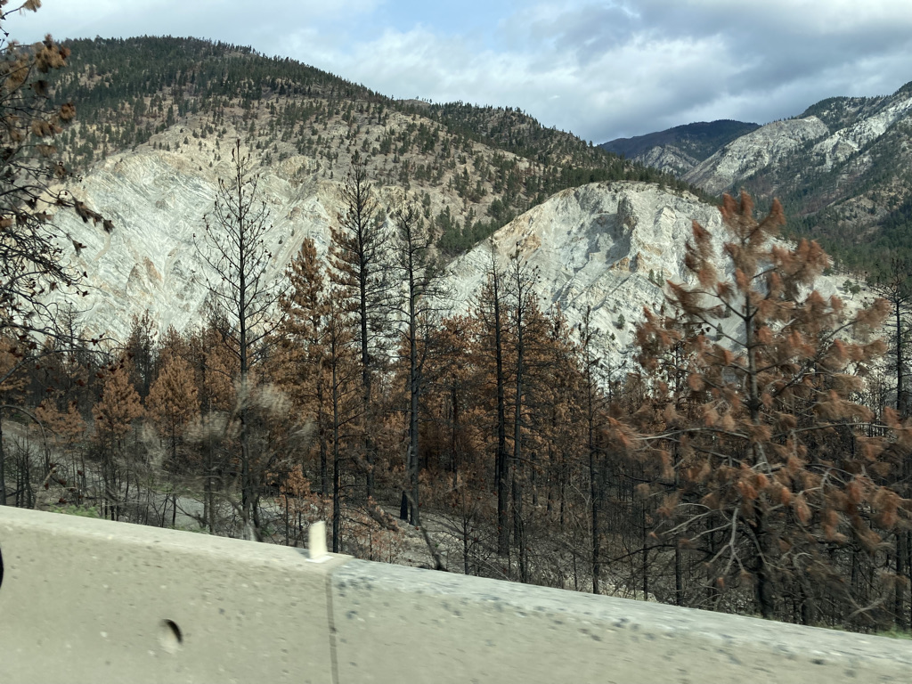 Our route home was via Merritt, Highway 8 to Spences Bridge, then Highway 1 back to the coast. A wonderful little rec site called N’Kwala was a welcome place to overnight along the Nicola River. More fire devastation was evident as we saw remnants of the fire that burned down Lytton on the other side of the mountain along Highway 8 in the Nicola valley. This fire was raging in late June during the heat dome. Only one month later flooding at Merritt with the whole town evacuated and Highway 8 was swept away.