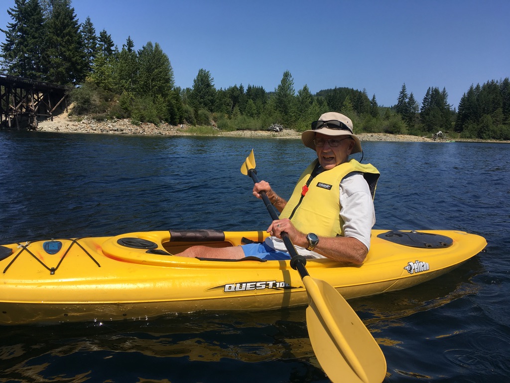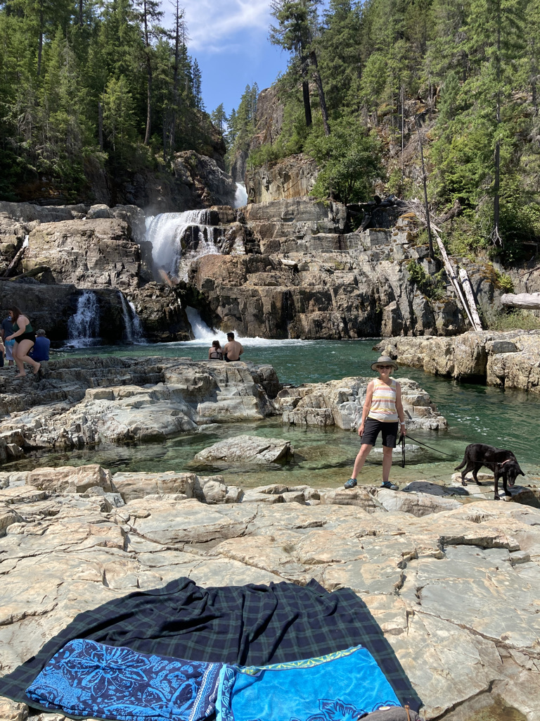 April with teaching done and ski season over, we packed up and headed into the trailer again with camping in Comox and Nanaimo then off to Sooke Potholes for a couple of weeks in May. We found great camping throughout the south island. During the “heat dome” in June we found higher altitude was a bit cooler in the parking lot at Mount Washington. Trail heads to many beautiful Strathcona walks were right across the road. That said, it was dusty and hot so we descended the mountain almost daily to dip into the Puntledge, Brown and Tsolem rivers. The roads were so hot, our poor dog, Fani, burnt her feet on a wood plank bridge over one of the rivers.