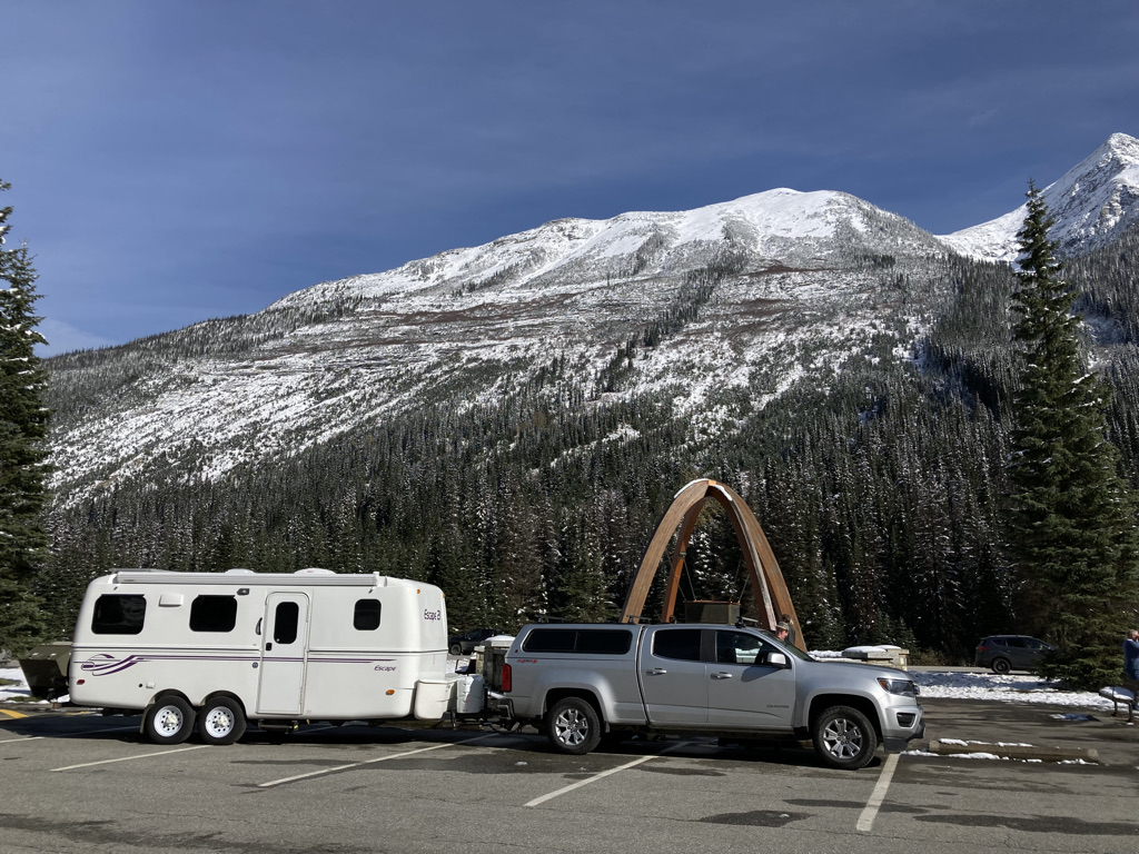 Lori and Mike joined us staying at Red Streak Campground in Radium for its final 6 nights of the season. Hiking around the trails at Red Streak and Kootenay National Park before the snow came was a bonus. A hike up to Dog Lake was spectacular with the calm reflection of the new snow promising winter to come.