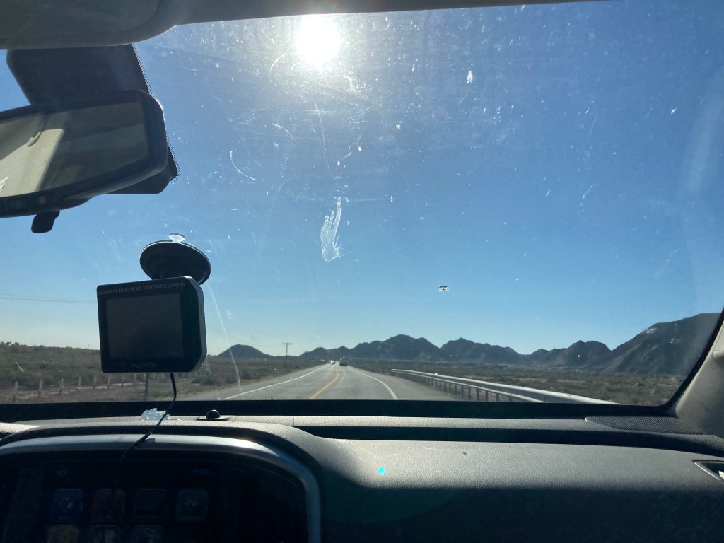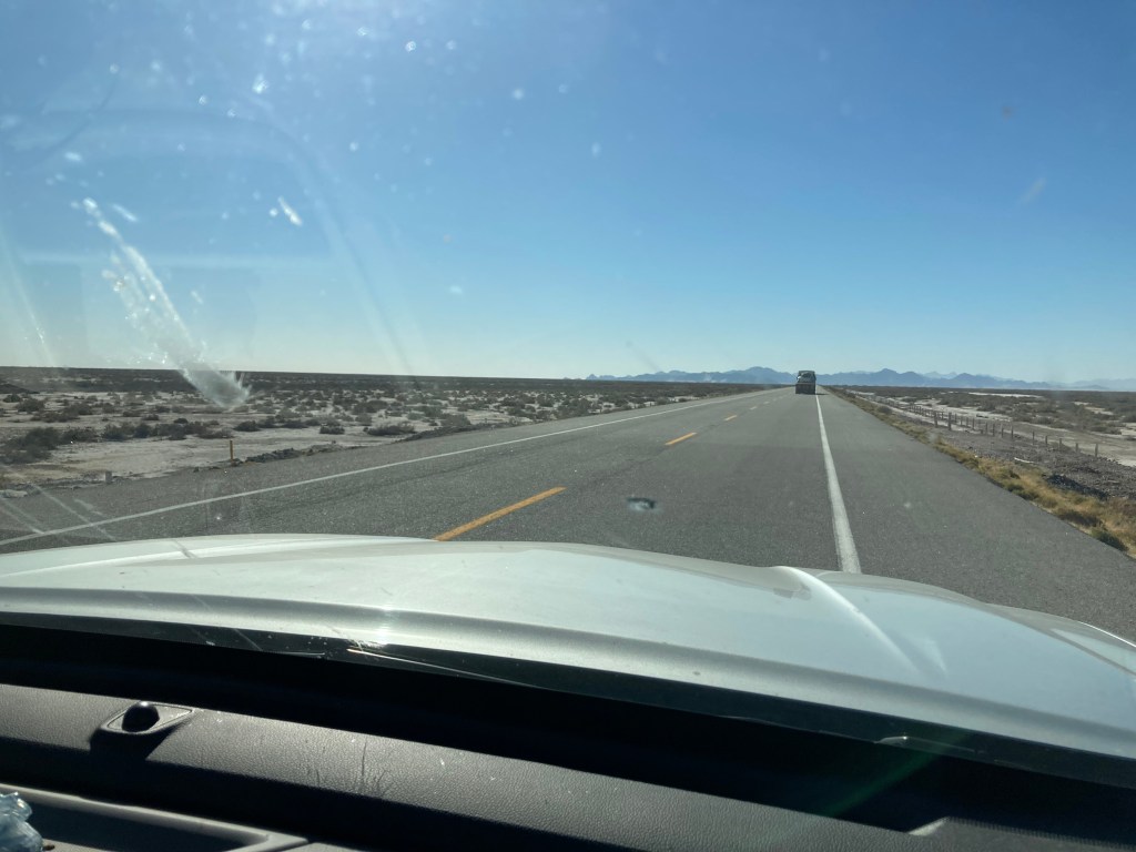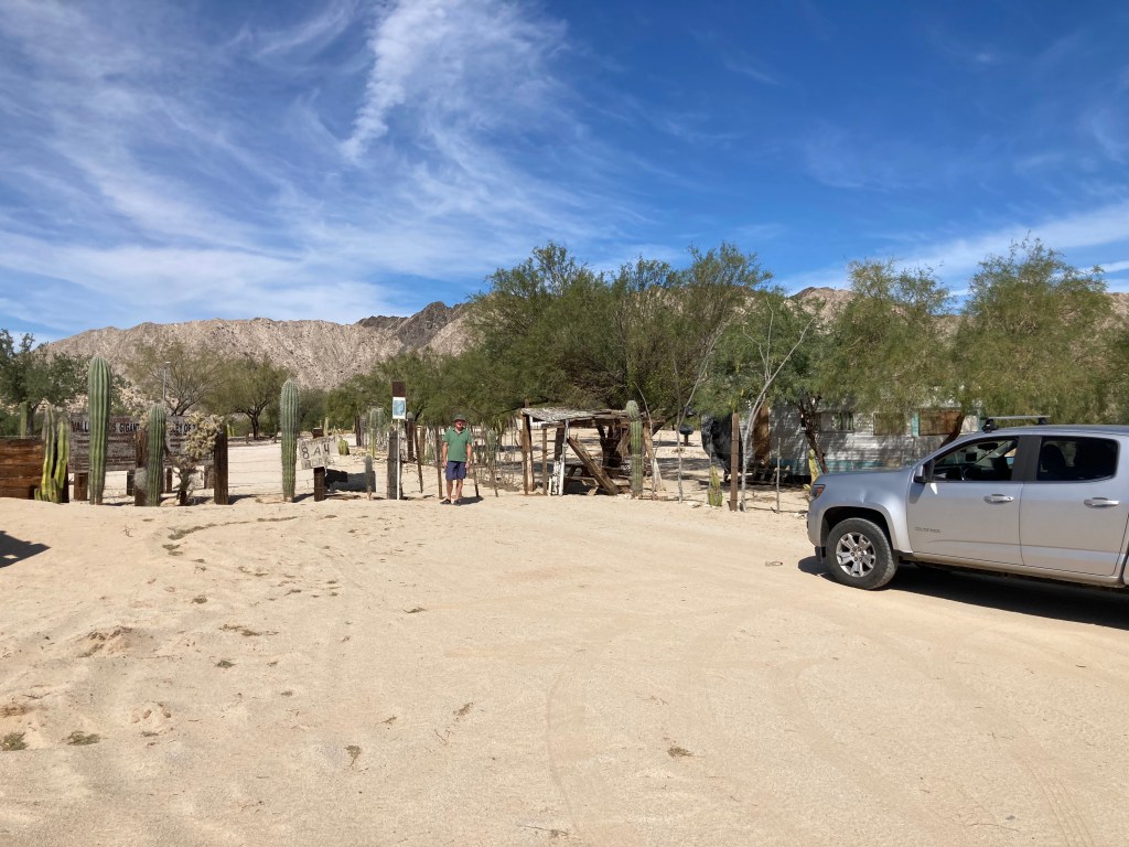 Highway 5 from Mexicali to San Felipe is straight. Makes sense since it is dead flat. The Colorado River exits the land just off to the left while driving south. Once mighty, it created a large delta that is now a wildlife preserve. But the water management upstream has left a white sand desert with no obvious flora and fauna showing from the road. Lots of fence line and discarded tires. Wide open land and skyscape that meet in a murky white middle. There are small rocky outcrop mountain ranges, Sierras, poking out along the way to the west and once we were almost at San Felipe the rocky outcrops and dunes became more prevalent. In fact, directly west of San Felipe is the Baja’s highest mountain though not visible or easily accessible from SF.