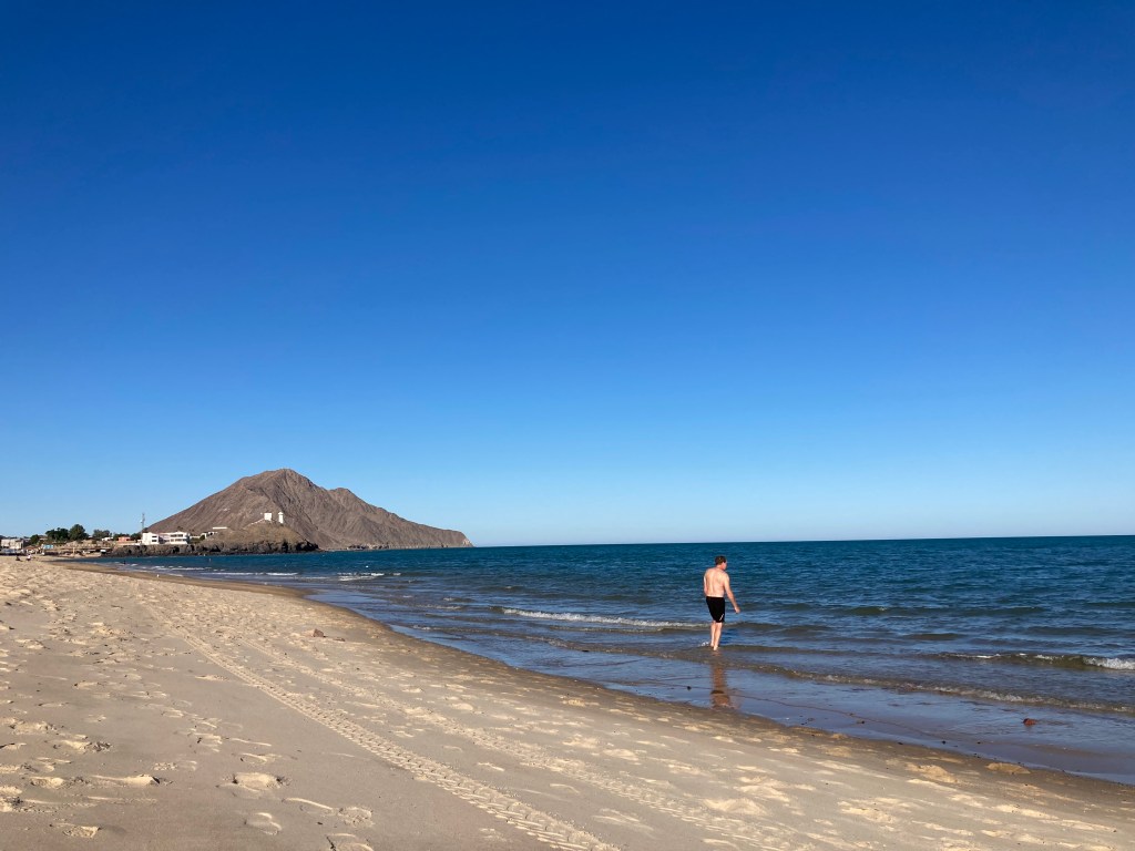 The Malecón is San Felipe’s jewel. A walkway full of restaurants and shops overlooking the sandy beach and oceanfront. There are hawkers selling hats, jewelry, and sunglasses. And at the end of October our thought was that there were an absence of tourists. We walked the length of it and decided to stop for our first taco and beer at the Taco Factory. The staff was so kind. I practiced what I could with my limited Duolingo Spanish lessons, and we managed to have delicious prawn tacos and a Tecate beer.