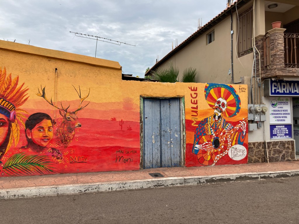 On to Mulegé. The plan was to go out to the lighthouse and meet Dave, a friend of Deb’s stepbrother. He winters in Baja and works as a paddle sport rep via Starlink. We pulled into the narrow streets that both Google and Garmin GPS told us to take and wound up at a blocked town square being readied for a 3-day festival.