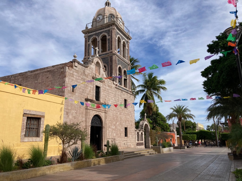 We stayed three nights and decided to head to Loreto. We booked in at Rivera del Mar. This highly recommended RV/campground park is in town and just a few blocks from everything. The Malecon along the waterfront has a mix of sand beach and waves crashing over rocks. The traffic-free old town area with its Jesuit mission dating back to 1697 and tolling bell tower remind one of the religious motivations of the first European Missionaries to make contact with a (mostly isolated) indigenous people. Accompanying this is a quaint, comfortable, open public square where laughing local children play and practice their bike riding, roller blading. This, with a backdrop of enticing, colourful shops and restaurants beckon. Loreto is charming! The rooster chorus and the rusty bells wake you up early.