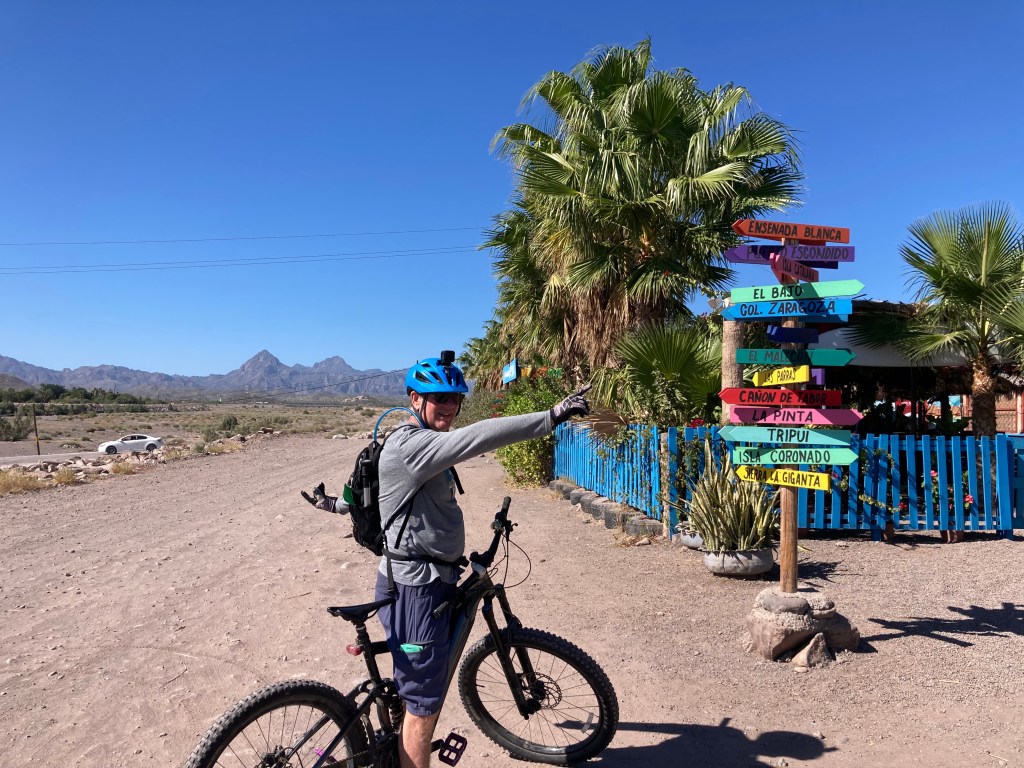 While in Loreto we cycled to a camp spot near the airport along the beach. Free and recommended by some fellow travellers and iOverlander we scoped it out. Palapas were constructed along the sand road and there were garbage cans ready for any wayward waste. No one was camped so we decided we wouldn’t either. That old spidey sense of strength in numbers prevailed. About 2 k down the beach and hidden from view was a chichi resort town with a PGA golf course. Who knew!! We had a look at it on our way to Agua Verde. Very sterile but we understood how some would prefer this to our meanderings.