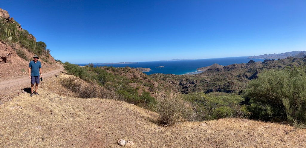 We also heard about a coastal village south of Loreto called Agua Verde. This village is a fishing village that boasts a spring and sheltered moorage for Gulf of California sailors. We read that it was a steep winding descent to the waterfront that would be a graveyard to anyone pulling a trailer. They were not wrong. Glorious views over the sea of Cortez helped the anxiety I shouldered while Albert concentrated a seemingly never-ending 3-4 hours drive down the narrow, hairpin, 12-18% grade of this access road. At the end is a restaurant…of course… and the blogs we had read explained that tourism is a particularly important source of income to the locals, so we had a couple of tacos while absorbing the beauty of this hidden gem. We spoke with a couple of Canadian sailors who stopped by the café for similar replenishment. They had just arrived and anchored in Agua Verde bay. Their boat stayed in the Baja over the summer in La Paz awaiting their return (a seemingly common practice in Baja by boaters and RV’ers). Our immersion in this paradise-like setting was hastened by the need to avoid driving the mentioned treacherous road in the dark, we headed back around 3pm.