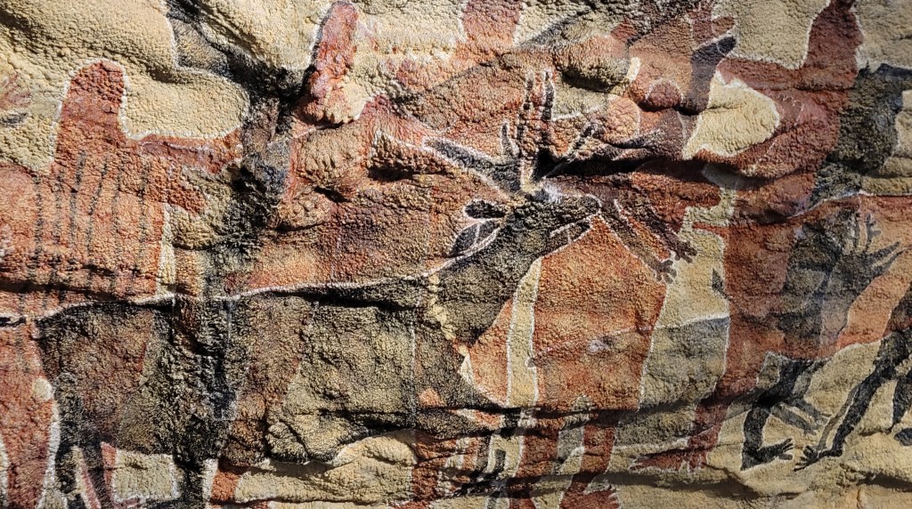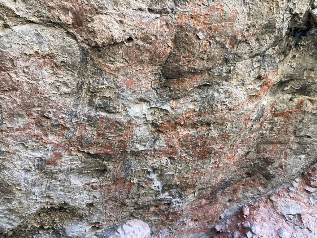 The drive from the Highway One flat dusty Vizcaino desert into the “Sierra” (mountains) was spectacular. The road was beautifully paved and if there were potholes, we didn’t hit them or see any to hit.  Arriving at the cueves (caves) parking we were instructed to go to the “hostel”, pay, then come back with a guide. All of this was in Spanish so we left looking for a hostel and hoping someone would be able to explain. We returned with Carlos our guide. Unable to communicate as he spoke no English, and I attempted to use my Spanish he just smiled. I think he may have been hard of hearing so our level of communication was further hampered. That was Ok because the paintings were very cool. Self explanatory…