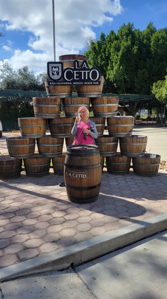 Arriving on a Sunday the roads were busy with tourists and locals enjoying a day off. There had been a rainstorm which made the bad roads terribly worse. We planned to find a campground to overnight so we could see some more of the area. Many were closed on Monday!!! But not Cetto, Mexico’s largest winery and the maker of our go-to wines over the last 5 months. Cetto’s ancestry started with Italian settlers and has been in business since 1928. With over 3000 acres of grape, they produce 16 million bottles annually divided over ten different quality levels. We knew their delicious “young wines” due to their affordability, so we decided to taste their boutique premium offerings. Our favorite was a complex Pinot Noir offering that was multi layered in complexities. Now that surprised us! Most of the vineyards that we saw throughout the region had olive trees along their fence lines, driveways and there were more than a few olive groves. We bought some Cetto olive oil.