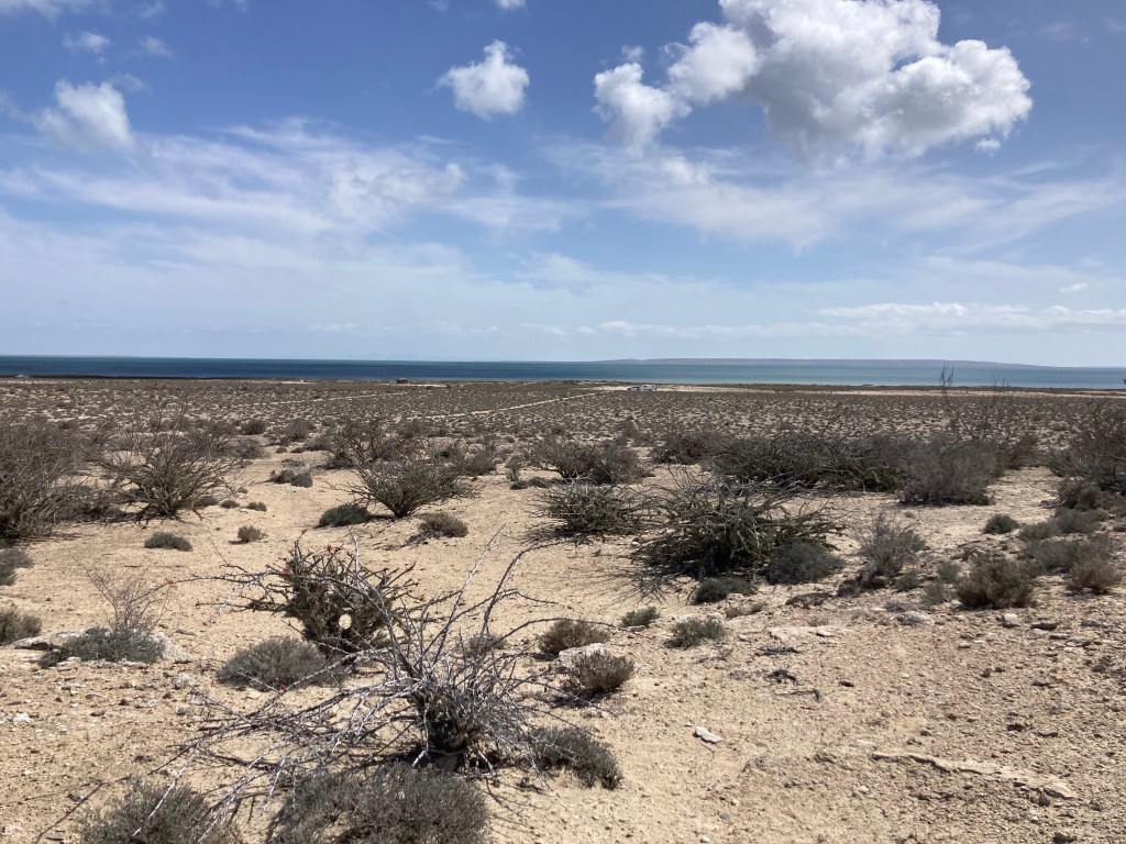 But the reason we were going to the bay was the Grey Whales. Grey whales calve and breed in Ojos de Liebre Bay where the high salinity of the bay allows for increased buoyancy thereby assisting the whale calves while nursing. Between January 1 and March 31, the public is able to camp and go on a whale watching tour. It took us an hour to drive the 16 km sand road to the campground and whale center. The dunes and scrub on the flat land felt like we were on the moon. A few campers were around but the wide-open space made us feel like we had the place to ourselves.