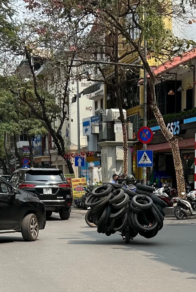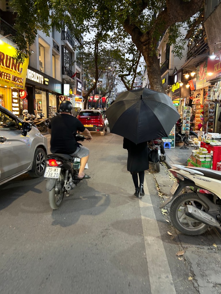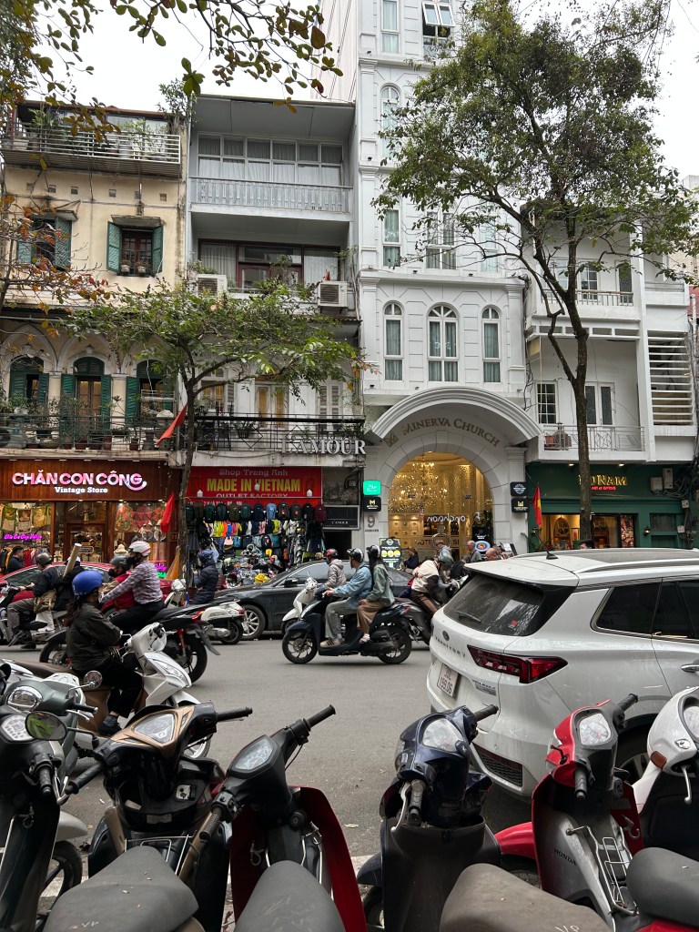 Our hotel in Tam Coc arranged a “limousine”, a van with scheduled bus transit route, to shuttle us the hour and a half to Hanoi. From a transfer point, the van driver stopped and pointed in the direction of a car that would take us to our hotel. Arrival at our destination was noisy and chaotic with cars, scooters and people everywhere. Our driver stopped the car at the intersection of a one way street, going the wrong way, and pointed towards where we should go. Then drove off.