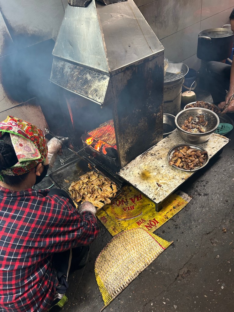 Atlas Obscura also led us to this Bun Cha restaurant down an alleyway, to a tiny space between many homes where excellent Bun Cha was being served. The woodfired grill was in the hallway that we walked through from the street.
