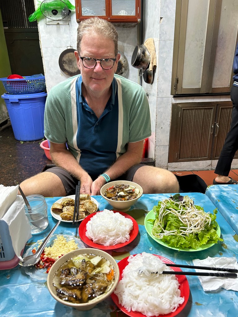 After the show we wandered the busy area and wound up on Beer Street. Loud, bright, and very crowded we were bombarded with restaurant staffers pushing menus in our faces to entice us to stop. It only made us get out of there faster. We were not very good at the circus that comes with huge tourist destinations. While, at first, we found it amusing and entertaining, we quickly felt overwhelmed. We found a quieter restaurant, Gánh Hanoi, with a small line up and satisfied customers saying it was their favorite. Whew.