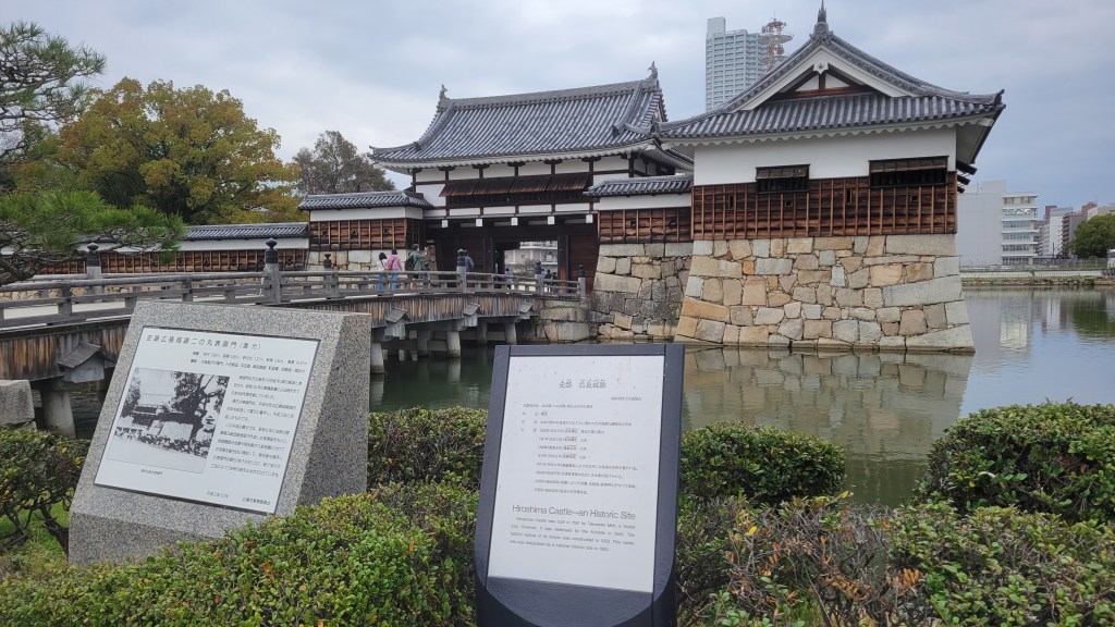 After the Peace Memorial, we decided to go back in time by visiting the Hiroshima castle. This castle was flattened and authentically rebuilt on its original site within the moat. It now serves as a history museum with peep holes for shooting marauders and Samurai sword slingers !