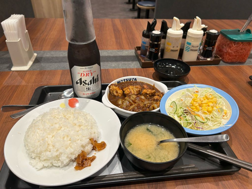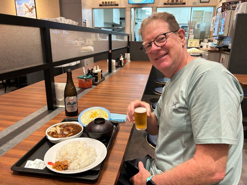 We hadn’t eaten all day so wound up eating in the lobby restaurant. This was also a new and fascinating adventure in Japanese restaurant automation. Japan has automated many of its services and this place had a menu order screen at the door. Once we navigated to the English instructions, we put an order together but by the time we had figured out how to pay it timed out. Good thing there wasn’t anyone waiting behind us because it took us 4 tries to fully understand the system and submit both of our orders. It spit out a couple of receipts and further inside the restaurant and above the kitchen pass was a screen that showed where our food was in the queue. Minutes later we each had a big Asahi beer, delicious chicken curry, perfectly cooked rice, finely shredded cabbage salad, served with miso soup, and a wealth of condiments at the table. All in for both of us it was about $25. Not disappointing at all!