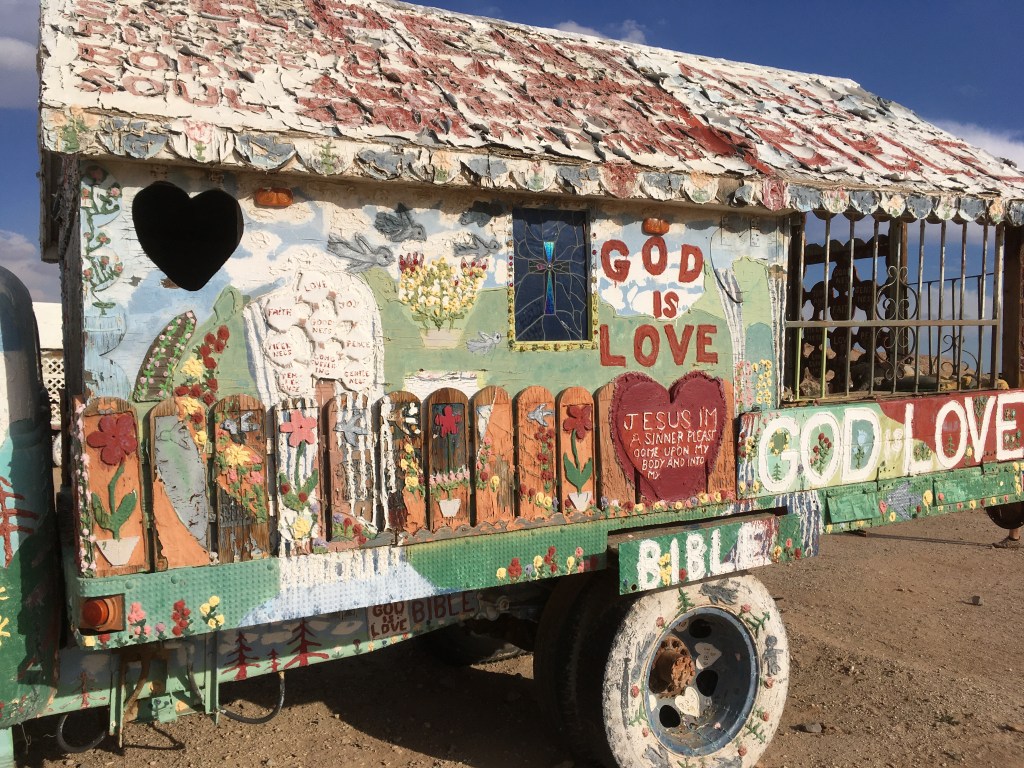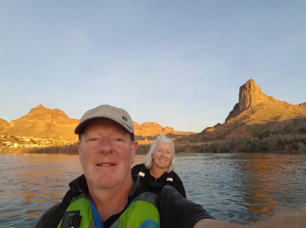 While there, we walked around Salvation Mountain which is a dubious monument created by visionary founder and spiritual guru Leonard Knight (for further entertainment regarding this it is worth Googling any of the preceding titles or names). We spent the evenings laughing, eating, drinking and playing card games. Our super insulated trailer kept us comfy and warm, but they were chilled to the bone in the summer toy hauler/ camping trailer so they headed back to their much comfier Park model trailer in Parker and talked us into heading there on the slow way home. No wonder they were freezing, Parker is at a much lower altitude than where we were in Anza Borrego and it was warmer by more than ten degrees Fahrenheit! We booked a site for four nights in the River Island State Park on the Arizona side of the river right across from their RV park on the Calif. side. More about that in a bit.