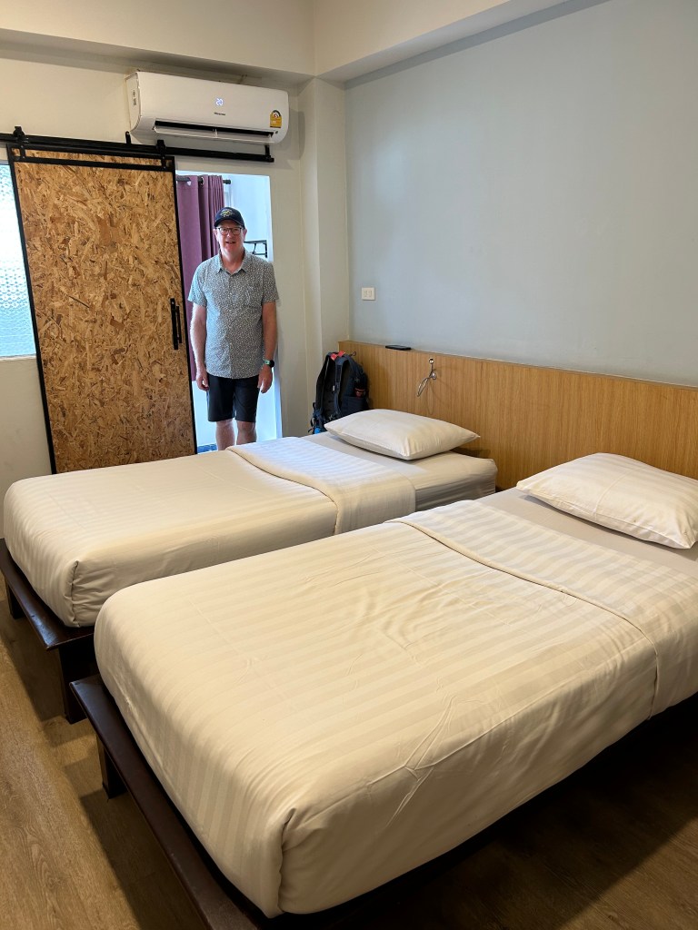 Our small room at the guesthouse had a fridge, air conditioning, a firm bed with soft pillows, and a café downstairs. It was quiet and we could ask for towels for the pool. The pool was cool. But welcome in 35 degree heat. Ms Aom asked if “everything ok”? Did the driver find us? Check! Wow.