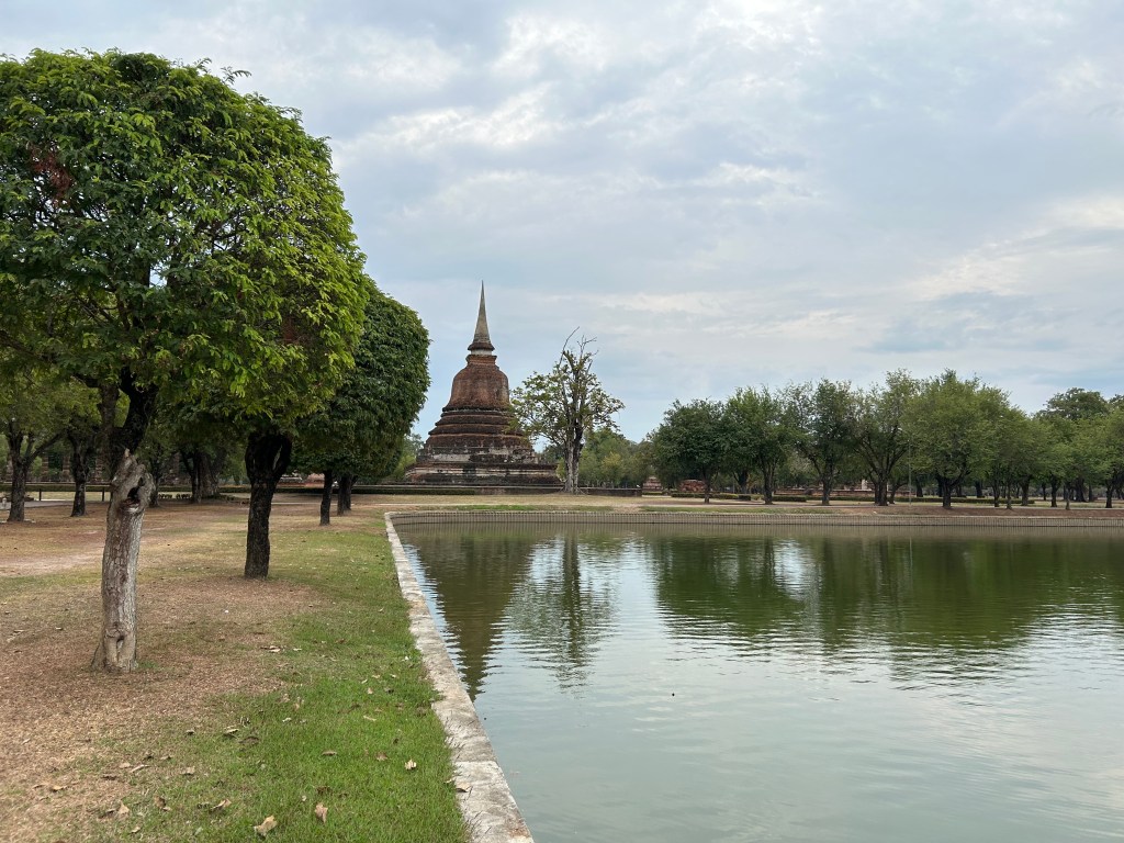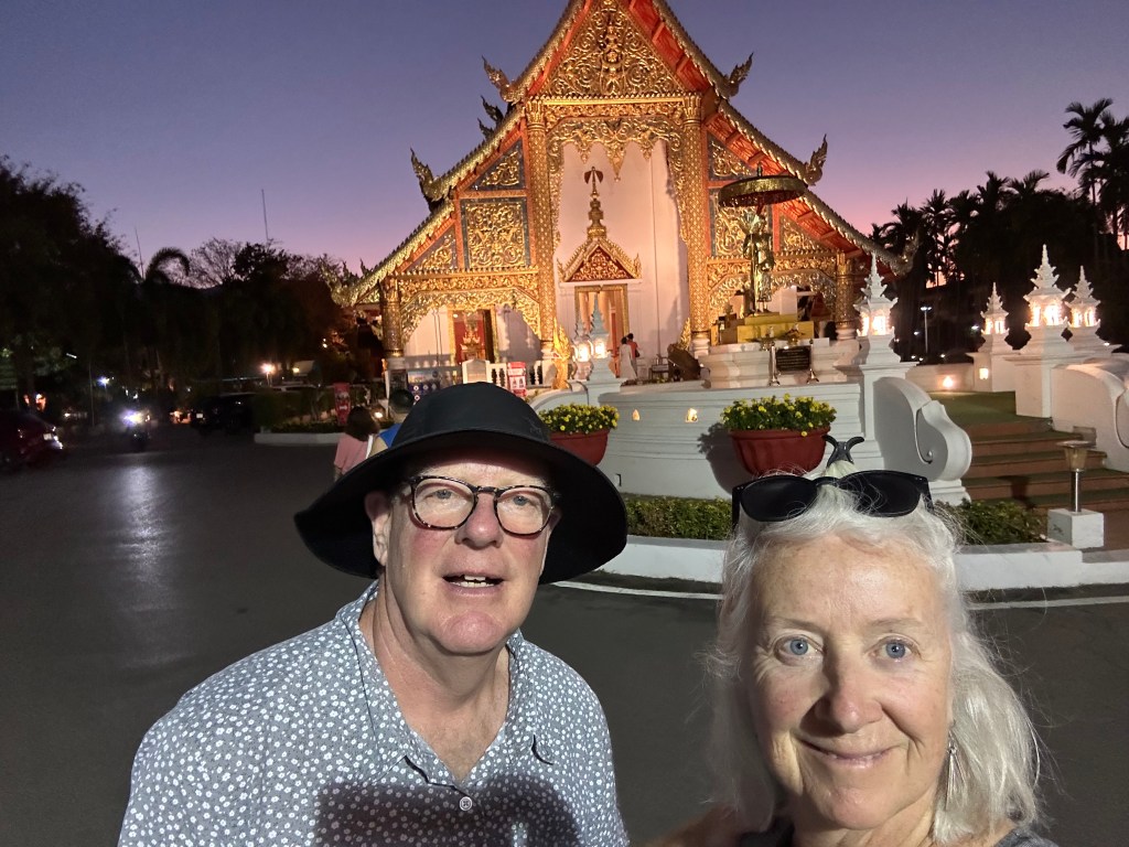 A few weeks into our trip we saw that one of our students, Aaron, was heading for Thailand soon so we reached out to maybe have a visit while travelling. The stars aligned when we left Pai by mini van and had a bus ride to Sukhothai booked in Chiang Mai. We flew to Chiang Mai but wanted to see the country by road or train on the way back to Bangkok flight connections. We had a two hour wait in Chiang Mai and Aaron and partner Anika were there. We had a great visit and the time flew before we were on our bus to Sukhothai.