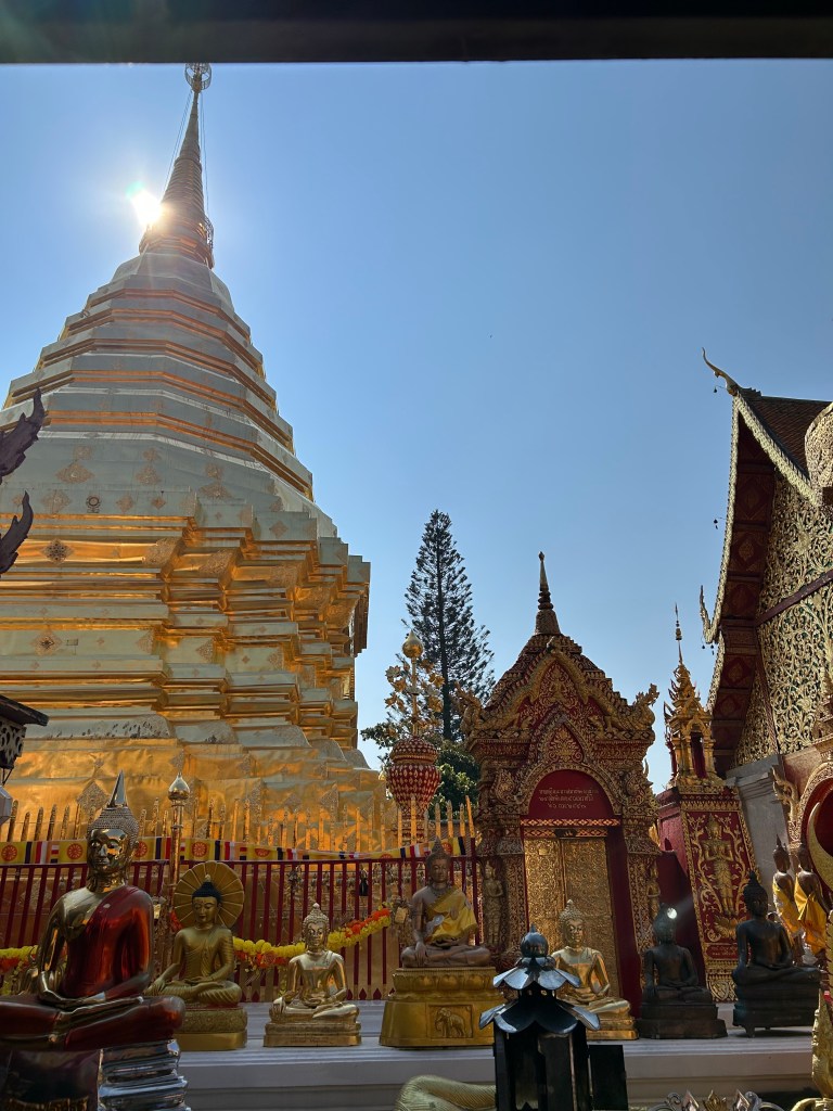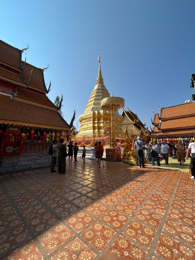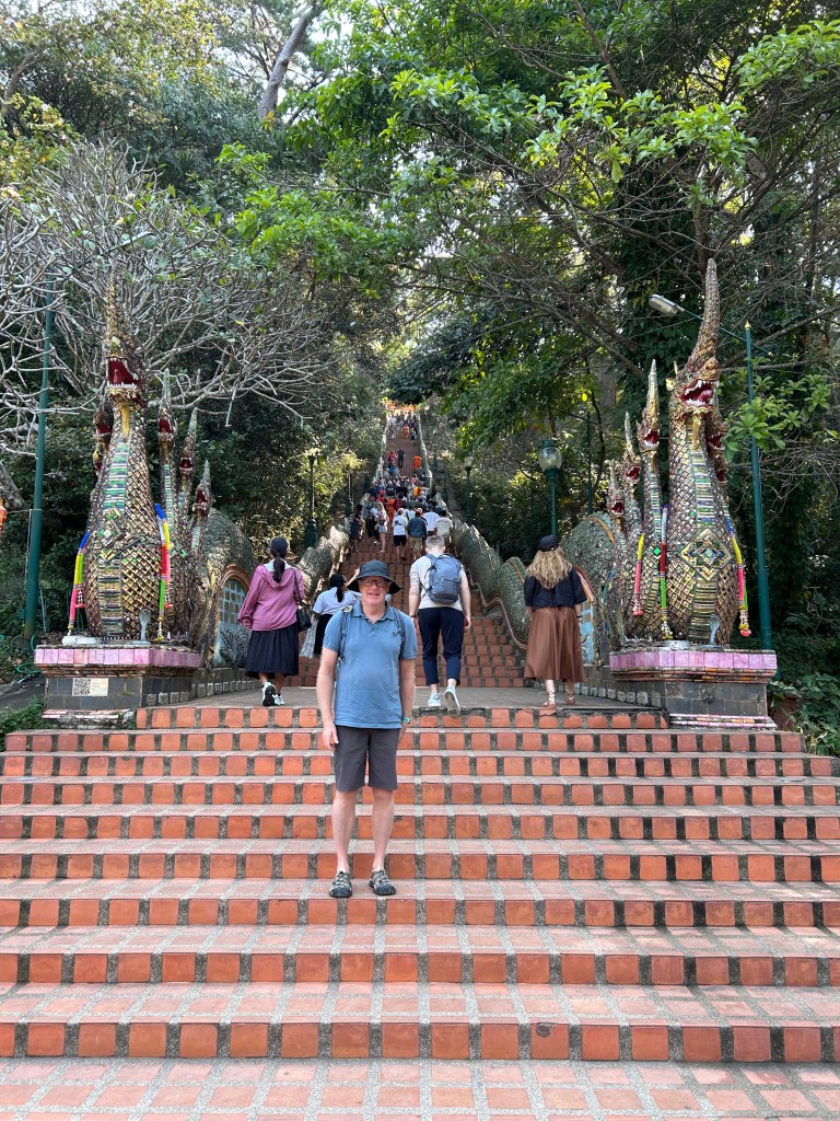 In the morning we were picked up by Andy. Ms Aom had arranged for him to drive us to Doi Suthep, the temple on the mountain above the city.