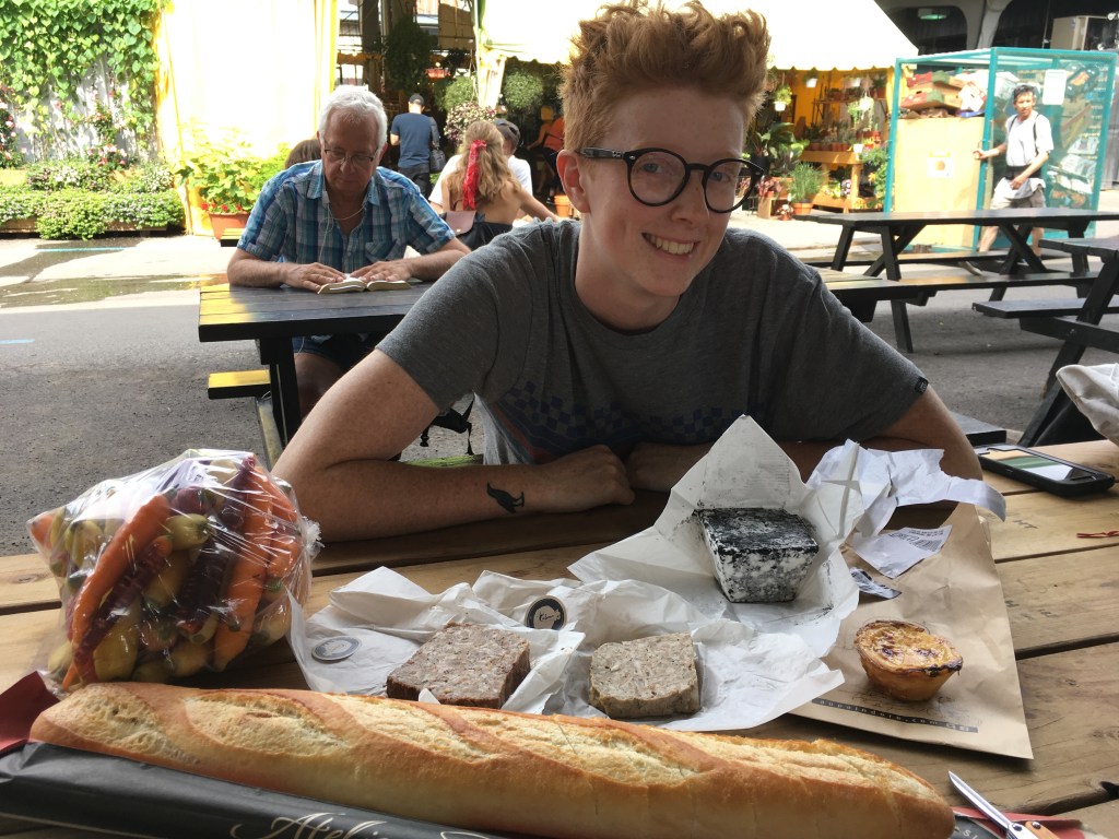 At Marché Jean Talon we bought fresh corn, baby rainbow carrots, 5 different flavours of pork, lamb, and beef sausages, salad makings and headed back to Elly’s place.