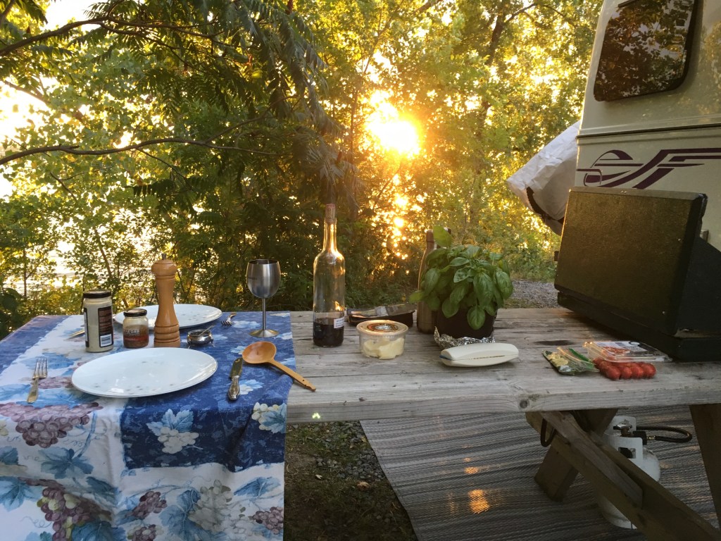 We chilled. This was our first lengthy stay. While it was full of traffic noise, the site we had was ours. We had trees and water on two sides, other neighbours on the other side and the city of Longueuil on the other side. There were cicadas, mosquitos, ground squirrels, herons, geese, chipmunks, tons of songbirds and gulls, and mostly French Canadian neighbours. Towards the end of our stay a couple from BC showed up. They have been rolling around this continent for the last 7 years with their golf clubs. They were on their way back west after having spent some time in Newfoundland this year. It was their first time to the Sogarive site and they also loved the proximity to downtown Montréal via the ferry. Another family with very young children we met had European licence plates and a website graphic on their RV. Turns out they were from France. He and the RV arrived via freighter. The rest of the family flew over to meet him. They had been travelling around North America for about three years and planned to return to France later this year, then return to Quebec to live and raise their children. They bought near Quebec City and are anticipating childrearing in Canada with all its open space and freedom. Another bus drove up with a bunch of very well-dressed Gen Xers in it. The bus reminded me of Priscilla; Queen of the Desert (fantastic 80’s Austalian cult flik). Behind this rig was a two-axle enclosed trailer that housed a brand new shiny blue convertible Mustang. While having a beer in Old Montréal at Brewsky’s, another fave, the pretty people in the blue Mustang drove by. The campground was filling up fast but it never completely filled. That night we heard the festivities and electronic music at the Montréal pride celebrations. The next day was the parade but we were leaving. Not sure if that Mustang was part of the parade but it would definitely have been perfect.