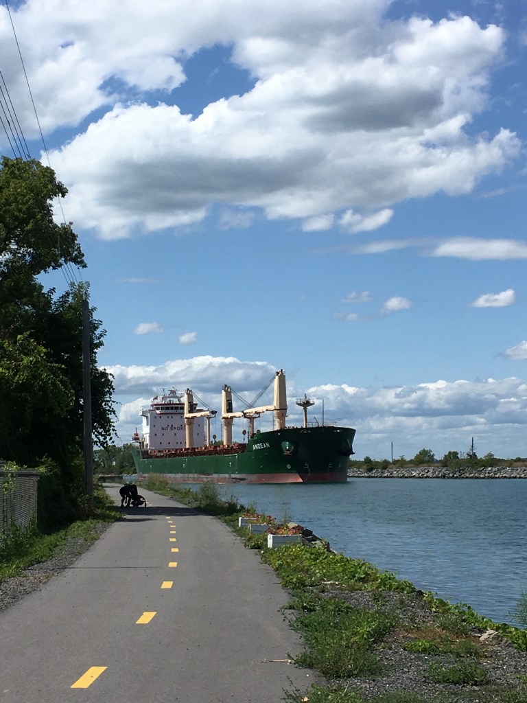 Our camp, at Port Plaisance (Sogarive), is along the bike path. This bike path is one of 650 km’s of bikeways throughout the Montréal region. It is also part of Quebec’s famous Route Verte bikeways. www.routeverte.com We wish they had an app. Our goal in coming to Québec and Montréal was 1) to see our daughter Elly and 2) cycle the Route Verte. There are 5300 km of cycling routes throughout Quebec, New Brunswick, Ontario and the US that intertwine. Some of them are part of the Great Trail, formerly known as the Trans-Canada Trail system. Some are paved, some are designated car-free, and some are car-share roads that are specifically chosen for bike safety and pleasure.
