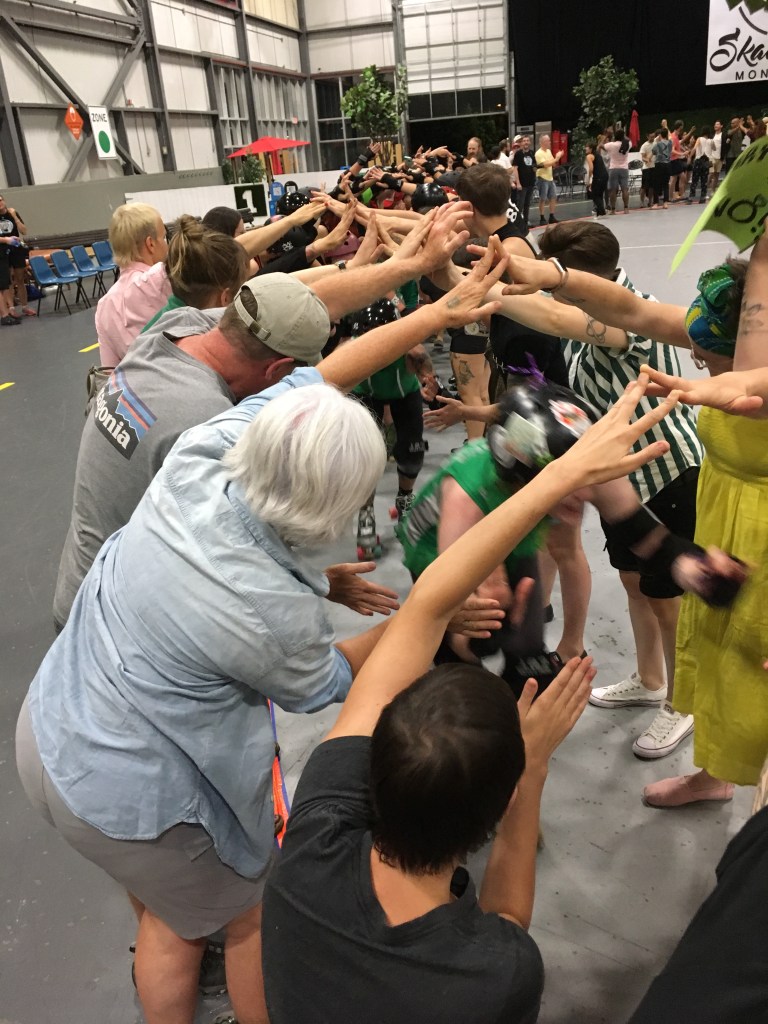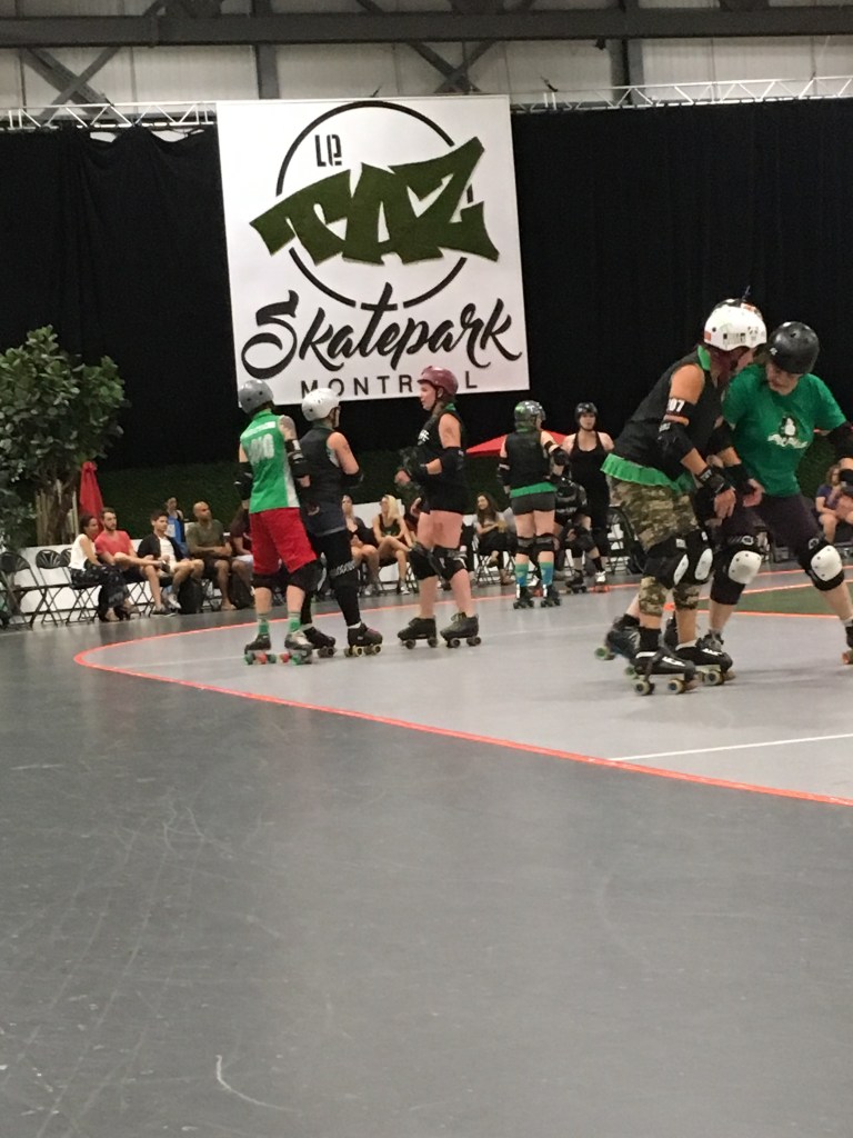 Elly’s friends are skaters and we were part of the crowd. It was so fun. As a fundraiser to get the elite teams to their matches, there was craft beer for sale. Icy cold for us to enjoy while we cheered the skaters. They are on a small flat track that is nothing like in the movie, Whip It, with the velodrome style banked corners. It is surrounded by chairs where all the spectators can cheer, boo, yell, drink and generally have a great time watching a super-fast sport. Both teams we watched were well matched for talent and the competion was very close and tense. The teams are female, or whatever you identify as, but predominantly female. And that is all okay. No BS Olympic rules on this one. The crowd is mixed with lots of LGBTQ2 and families and friends. While both teams were hating each other on the track, they were hugging and sharing stories off the track. The restroom had a “ladies” sign above it, but that meant nothing. On the door to the washroom two genders were identified, both male and female images. Everyone welcome here! The world could learn from Roller derby.